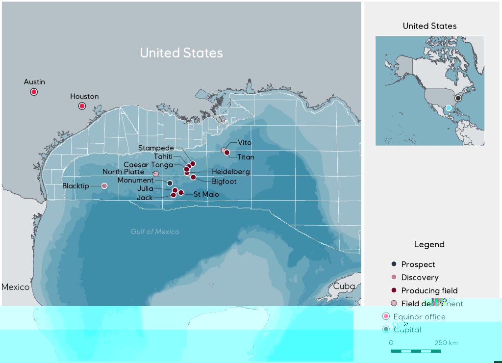 Equinor has been present in the U.S. Gulf of Mexico since 2004 with exploration prospects and interests in eight producing fields in the U.S. Gulf of Mexico and two in development. Equinor is the owner and operator of the Titan facility.